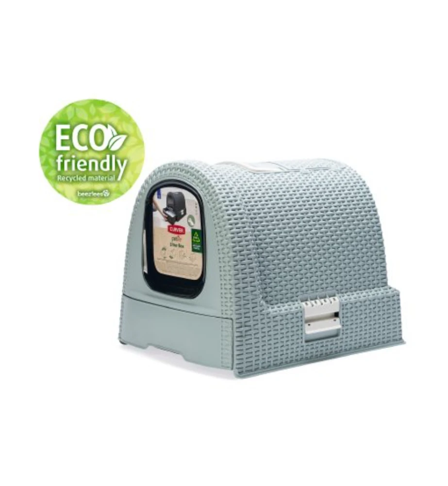 De Curver Kattenbak bestaat voor 95% uit gerecycled materiaal (huishoudelijk plastic afval en oude visnetten op de bodem van de zee (ocean waste)). De hele kattenbak is op zijn beurt ook weer 100% recyclebaar.