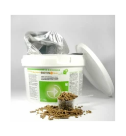 Biotin-P van Prodivet is een aanvullend diervoeder voor paarden en veulens ter ondersteuning van de hoeven en een soepele en glanzende vacht. De granulaat korrels kunnen eenvoudig toegevoegd worden aan de dagelijkse voeding.