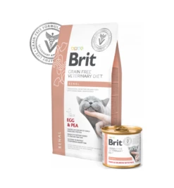 Brit Grain Free Veterinary Diet Renal is een complete en graanvrije dieetvoeding voor katten met een verminderde nierfunctie of chronische nierinsufficiëntie. Daarnaast kan de voeding ook ingezet worden bij katten die leiden aan het cardio renaal syndroom of uraat en cystine urolithiasis.