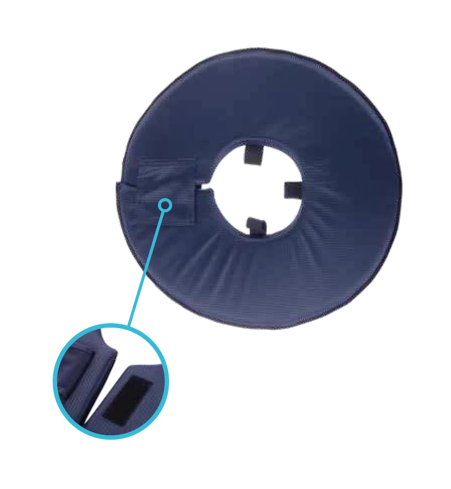 De Vetlando beschermkraag is een comfortabele kraag die gebruikt kan worden tegen likken en knagen aan lichaamsdelen na bijvoorbeeld operatie of wondbehandeling bij honden en katten. De Vetlando beschermkraag is gemaakt van een waterafstotende stof die met de hand gewassen mag worden. Doormiddel van de lussen is de kraag makkelijk met een halsband vast te maken.