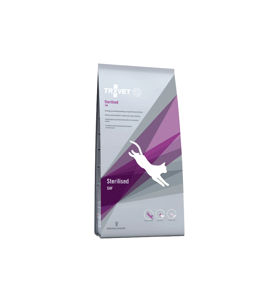 De Trovet Sterilised SHF is speciaal samengestelde, complete voeding om aan de veranderde voedingsbehoefte van gecastreerde/gesteriliseerde katten te voldoen. Het kan al gegeven worden aan kittens vanaf zes maanden. Om overgewicht tegen te gaan is de energiedichtheid in deze voeding verlaagd. Hierdoor kan ondanks een verminderde energie behoefte toch een normaal maaltijdvolume gegeven worden.